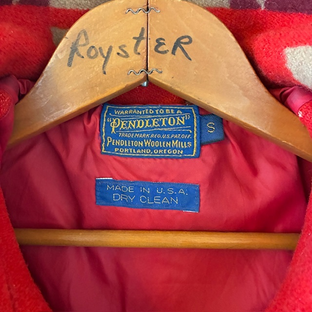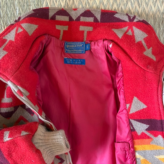 アメリカのビンテージショップで購入しました。1940〜50年代頃と思われるペンドルトンジャケットです。珍しい柄でお洒落な一着です。ジッパーはTALON、サイズ表記はSになります。 素人測定ですが、身幅48cm、着丈63cm、肩幅45cm、袖丈59cm あります(誤差はご了承下さい)。おおよそM相当でしょうか。数カ所ウールが抜けています(ヴィンテージ慣れしている方は気にならないと思いますが神経質な方はお控え下さい)。年代を考えれば個人的には状態は良好だと思います。ヴィンテージ、USED品にご理解ある方、よろしくお願いします。